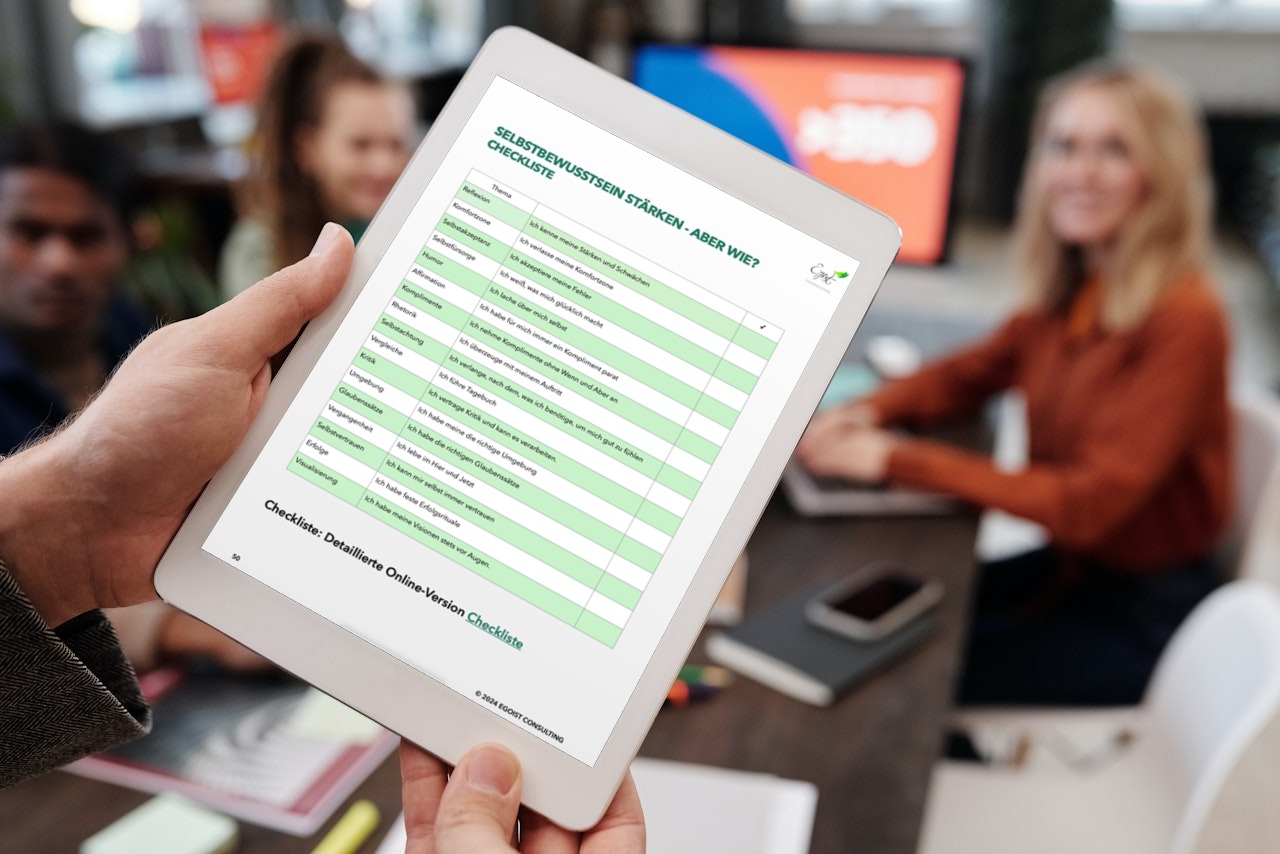 Dein digitales Workbook ist das ideale Werkzeug, um dein Selbstbewusstsein aufzubauen und langfristig zu stärken. Es bietet eine Vielzahl von Übungen, Reflexionen und praxisnahen Anwendungen, die dir helfen, deine Selbstwahrnehmung zu verbessern und dein Selbstbewusstsein kontinuierlich zu entwickeln.